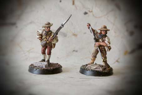 Questi soldatini in 28mm di metallo della Perry Miniatures rappresentano dei Patrioti Americani appartenenti alle Milizie del Sud ; i combattenti della guerra d’Indipendenza Americana erano spesso volontari che non disponevano nè di armi nè di uniformi,e sovente indossavano i loro abiti da contadini o gli abiti da caccia a volte decorati con monili indiani. I pezzi che propongo oggi hanno una tenuta estiva tipica delle zone del sud degli Stati Uniti.