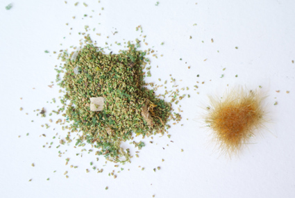 Una volta dipinto il terreno aggiungeremo dell’erba sintetica e dei cespugli incollandoli sempre con colla vinilica.
