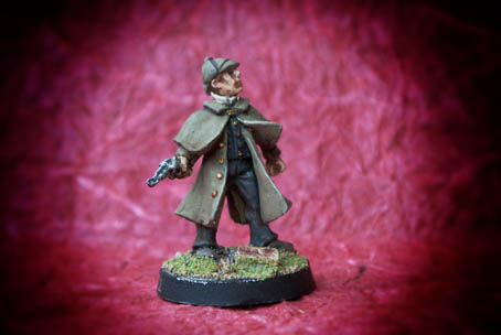 Direttamente dalle pagine dei romanzi di Arthur Conan Doyle arriva questa miniatura del perido vittoriano commercializzata dalla Wargames Foundry, il pezzo rappresenta il celeberrimo detective Sherlock Holmes. La miniatura è in metallo scala 28mm , originariamente era data in omaggio ai clienti del mail order.